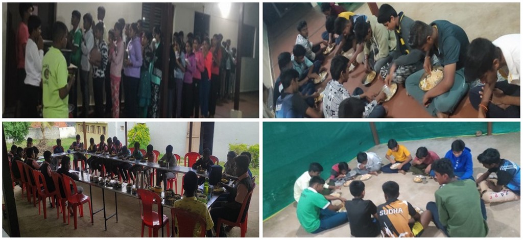 Los sacerdotes cuidan de los niños y las hermanas de las niñas. Actualmente, hay veintisiete niños alojados en el internado. Durante la temporada de lluvias y cerca de la época de exámenes del SSLC, más de cuarenta estudiantes se reúnen para estudiar y prepararse para sus exámenes y así tener éxito en la vida. Los niños provienen de diferentes orígenes y religiones, pero viven juntos como una sola familia, compartiendo amor, respeto y cariño. También participan en actividades espirituales como asistir a la Santa Misa y rezar el Rosario todas las noches.