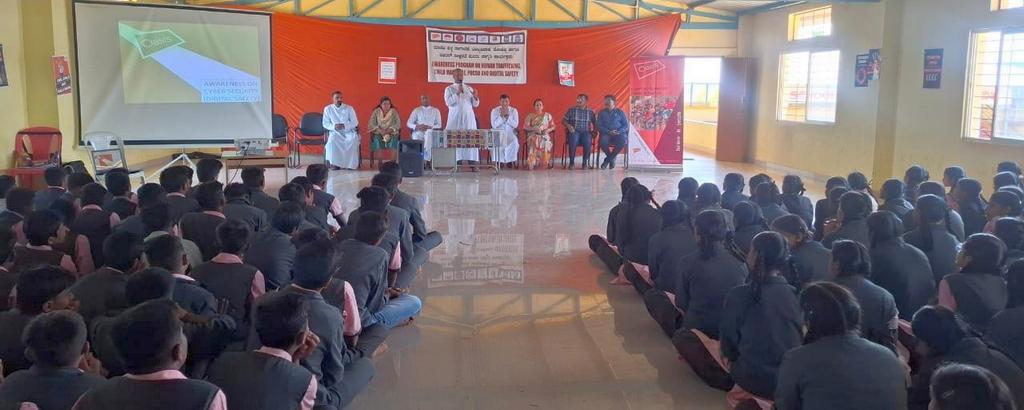 El 24 de febrero de 2025, el P. Shantharaj R., en colaboración con el equipo de Oasis Mumbai, organizó una sesión de sensibilización para los niños sobre delitos cibernéticos digitales y trata de personas. Los miembros del equipo de Oasis ofrecieron ejemplos y cortometrajes sobre estos contenidos. Les aconsejaron a no revelar su contraseña de un solo uso a desconocidos cuando se la pidan sin el conocimiento de sus padres.