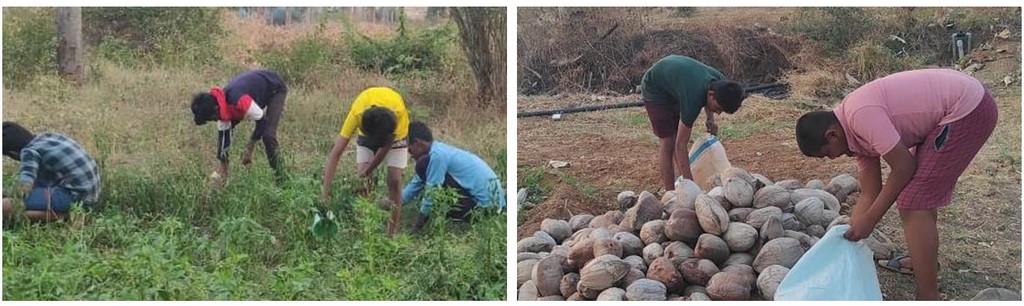 Durante las vacaciones escolares y nacionales, en lugar de perder el tiempo, se dedican a diversas actividades productivas. Participan en la limpieza general, cortan y recogen leña y cuidan los huertos. Su trabajo en equipo y cooperación son extraordinarios; ninguna tarea es demasiado difícil para ellos cuando trabajan juntos con alegría y unidad.