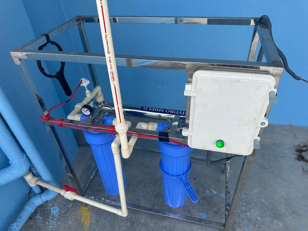 El agua que se consume en el hogar de acogida proviene de pozos perforados en la propia parcela, pues no existe aún infraestructura pública de suministro de agua potable por canalización. El agua del pozo no puede ser consumida sin un tratamiento previo de potabilización, que se realiza mediante una máquina purificadora que conlleva filtros que deben ser sustituidos periódicamente. El dispositivo adquirido permitirá velar por la salud, seguridad e higiene de los niños acogidos.