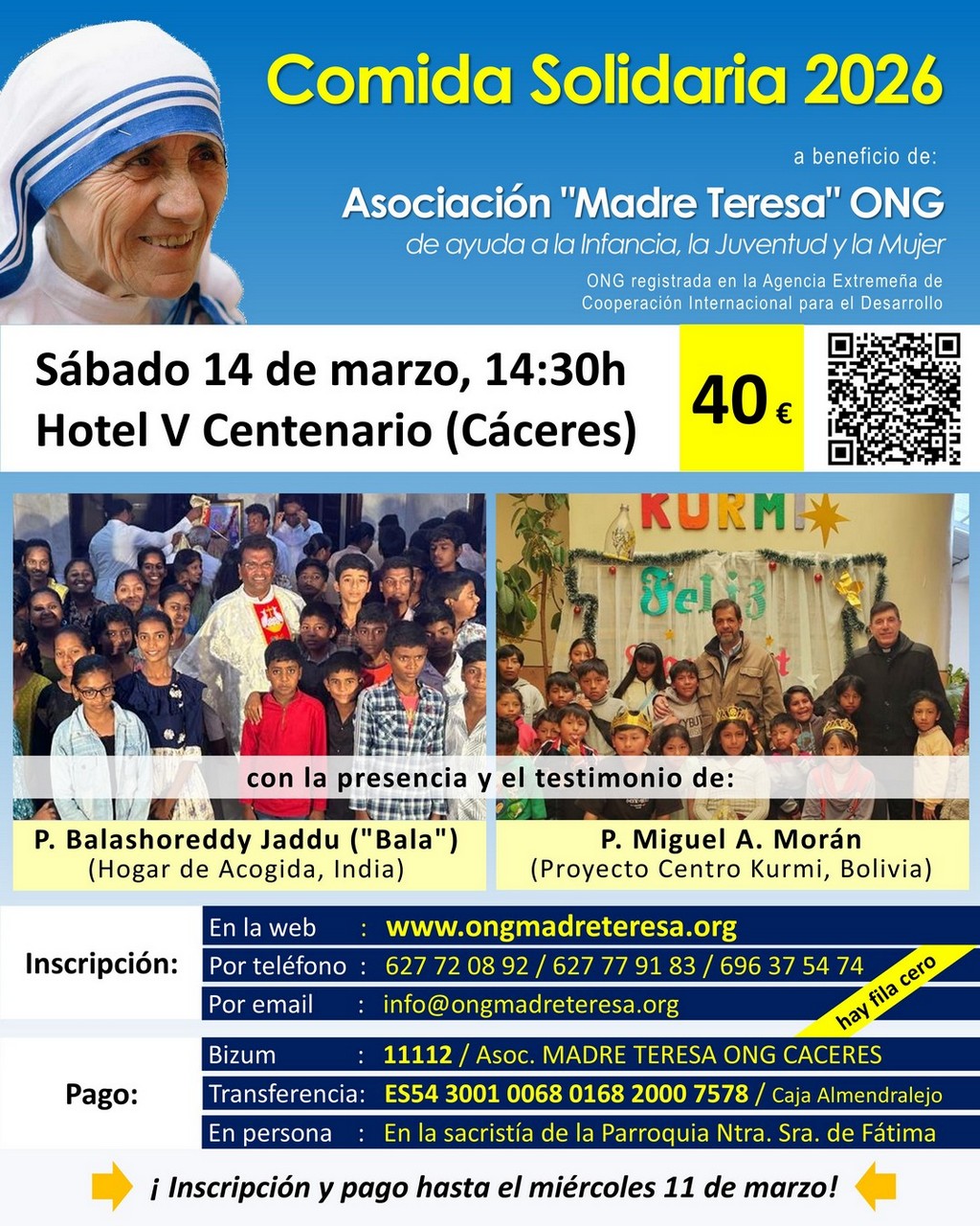 Contaremos con la presencia y testimonio del Padre Balashoreddy Jaddu ("Padre Bala"), del Hogar de Acogida en Telangana (India), y del Padre Miguel Ángel Morán, que impulsa el Proyecto Centro Kurmi (Bolivia).